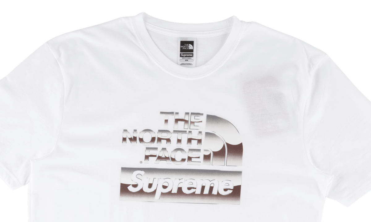 The white Supreme x The North Face Metallic Logo Tee originally released as a part of Supreme's Sping/Summer 2018 offering. For this piece, a special metallic silver logo that represents both Supreme and The North Face is emblazoned on the front chest. The same branding appears in smaller form on the back right shoulder.